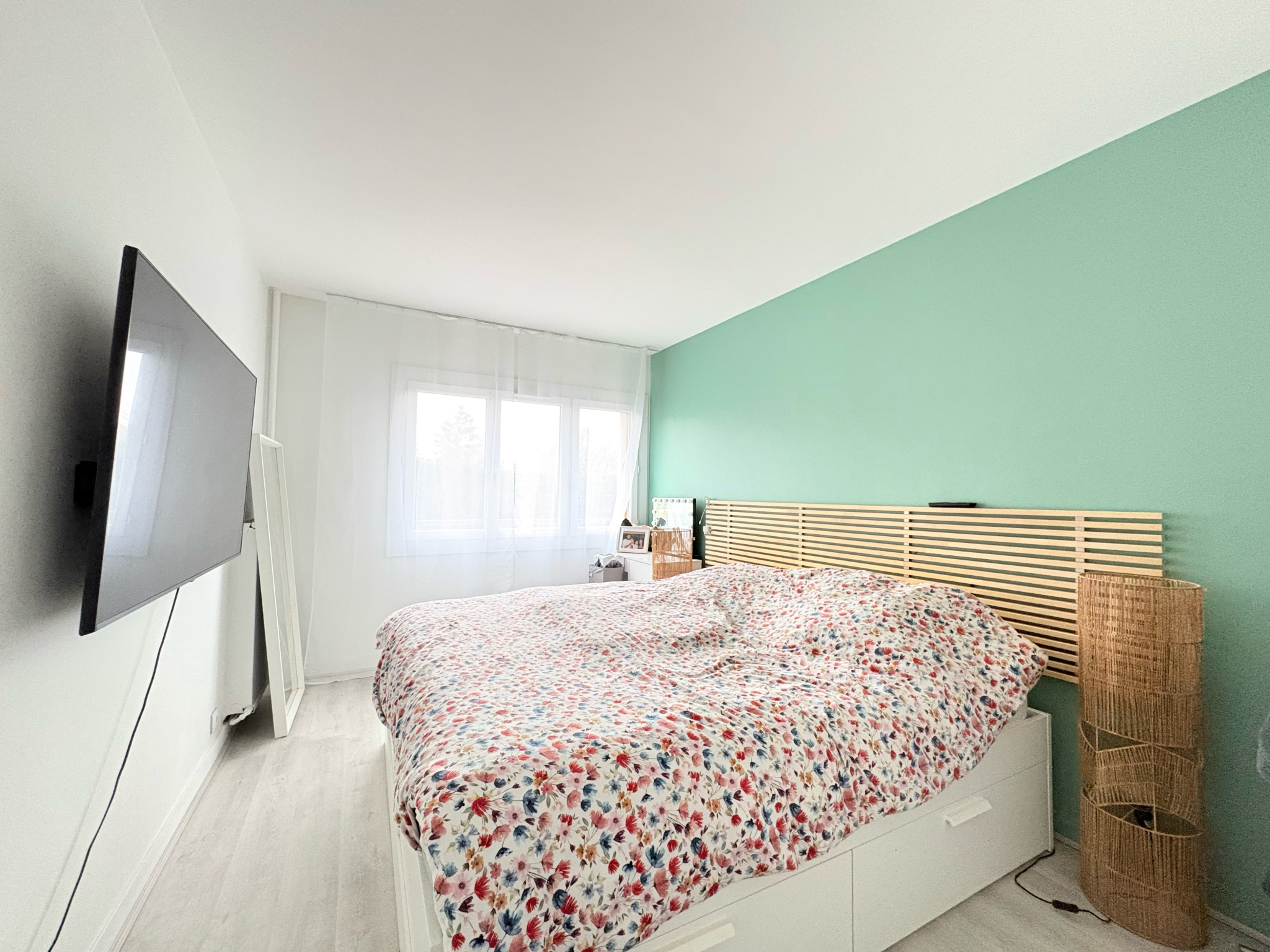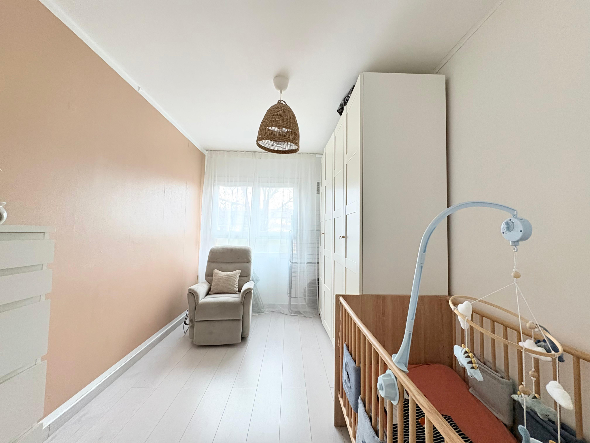Il se compose d'une entrée avec placard, d'une spacieuse pièce de vie avec cuisine ouverte aménagée, de trois chambres, d'une salle d'eau, d'un WC indépendant ainsi que d'un espace buanderie. Une cave et une place de parking complètent ce bien. Il est également possible d'acquérir un box fermé en supplément pour 15 000 EUR.