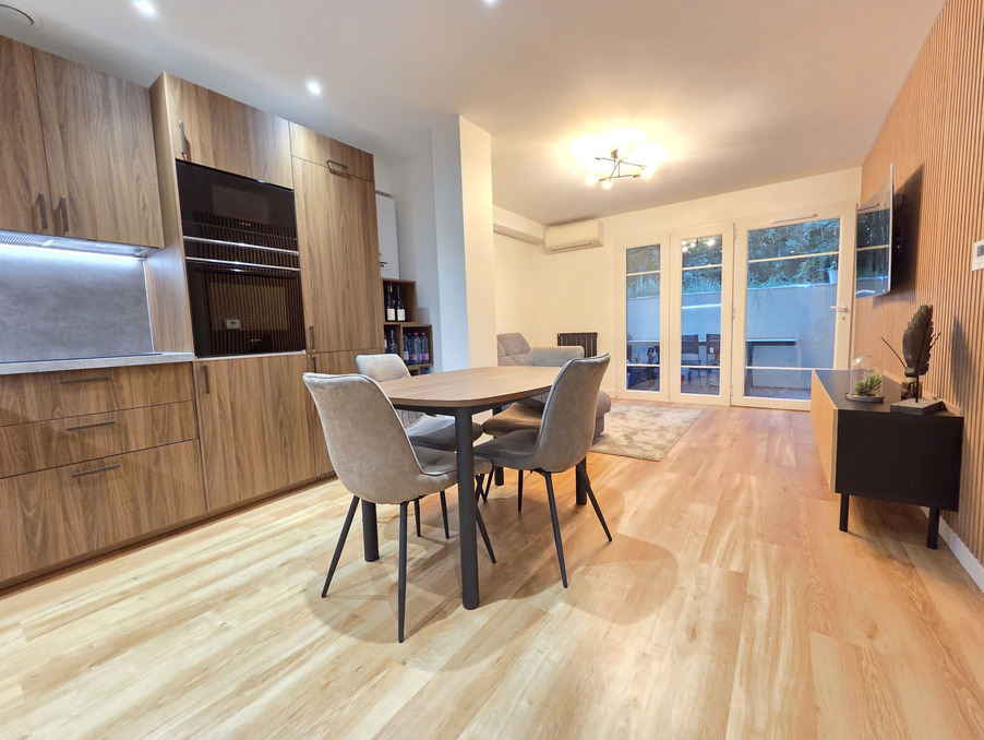 Entièrement rénové avec goût, ce bien se compose d'une entrée, d'une spacieuse pièce de vie avec cuisine ouverte donnant accès à une agréable terrasse, de deux chambres dont une avec placard intégré, d'un WC indépendant et d'une salle d'eau avec un deuxième WC.