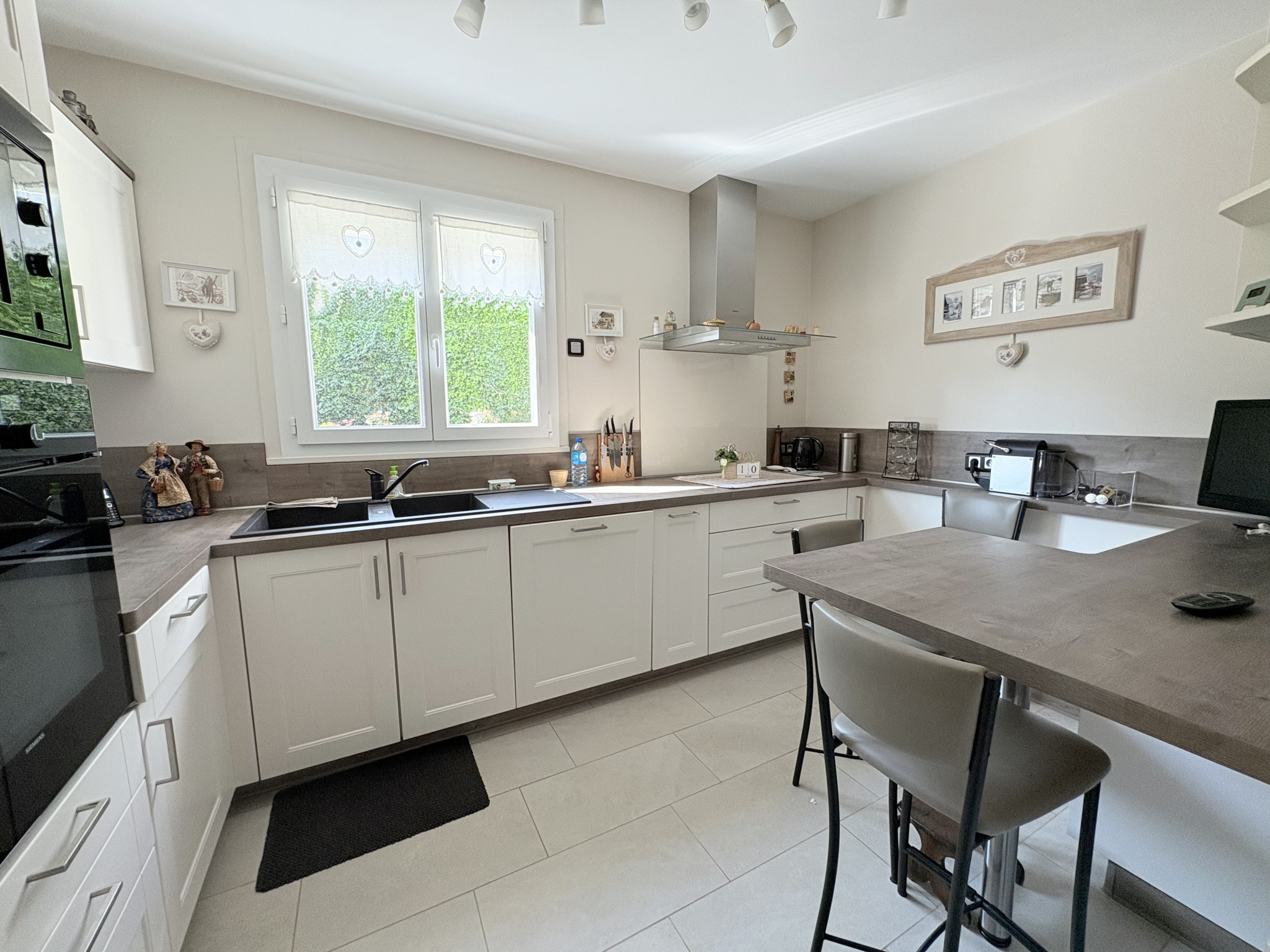 En exclusivité dans le lotissement verdoyant et sécurisé du Hameau du vieux chênes cette agréable maison de 98m2 décomposée ainsi : Entrée avec placard, salon/séjour avec cheminée, cuisine aménagée et équipée, cellier et WC séparé. 3 grandes chambres avec placards, salle de bains récente avec baignoire et douche, un garage avec coin buanderie ainsi qu'une dépendance de 15m2. Cette maison possède de nombreux placards, un jardin ensoleillé avec une tres belle terrasse sans vis a vis. Si vous recherchez le calme absolu, cette maison est faite pour vous.