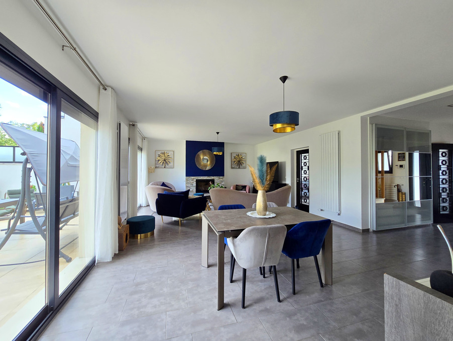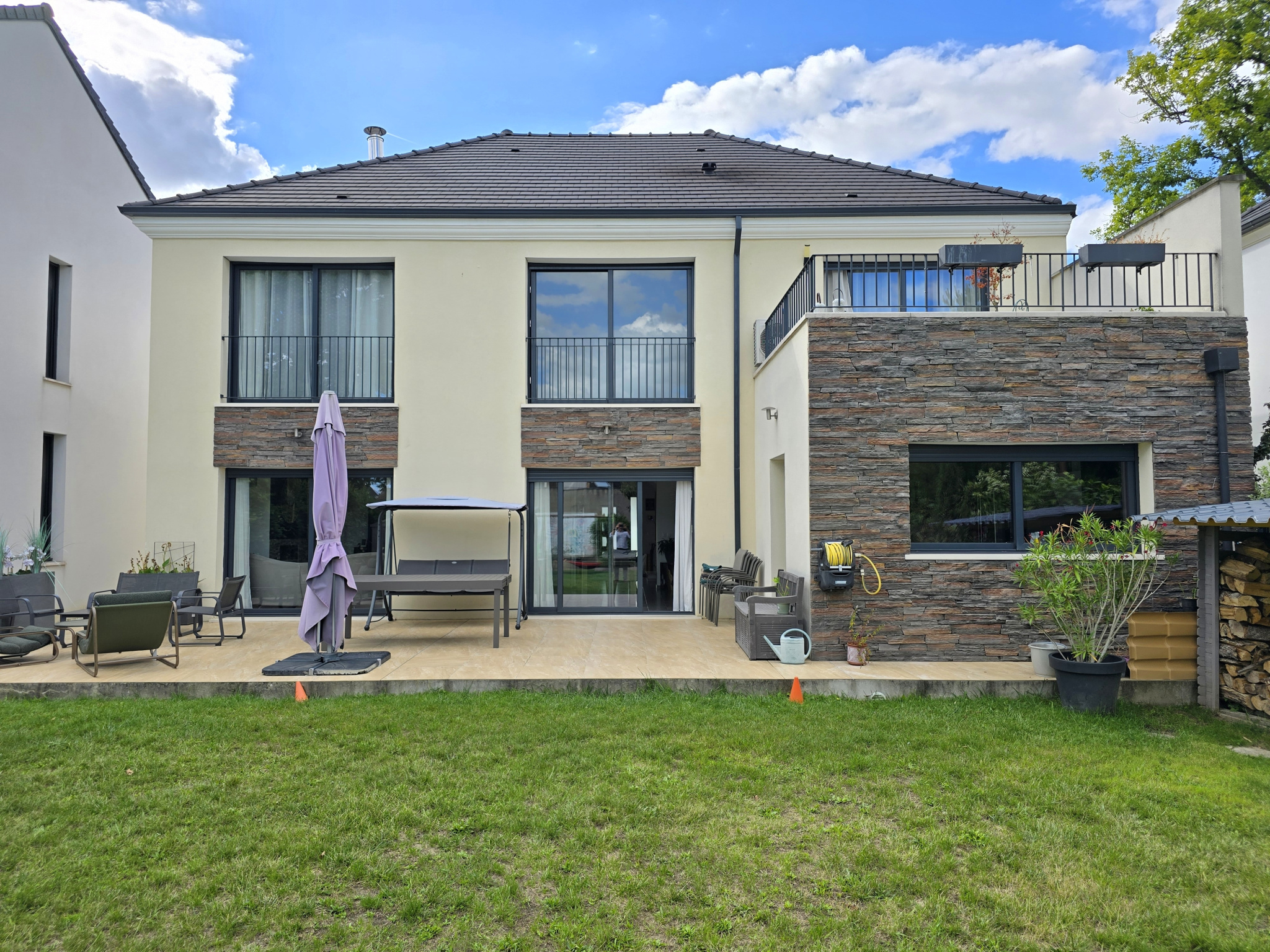 L'agence Gindra vous propose en exclusivité partagée cette superbe maison d'architecte de 2019 à vendre dans le quartier recherché de Marbeau au Plessis-Trévise sur un terrain de 635m2. Cette maison propose une agréable entrée avec placards ouverte vers le double séjour avec cheminée et grandes baies vitrées donnant accès à la terrasse et au jardin, une chambre avec son cabinet de toilette, une cuisine dinataoire aménagée et équipée qui donne également accès à la terrasse, un cellier communiquant entre le garage et la cuisine vous apportera confort dans votre quotidien. A cela s'ajoute un garage et un WC pour compléter le RDC. A l'étage, un beau palier avec nombreux rangements dessert 2 chambres, une salle de bain avec baignoire et douche, et une suite parentale avec salle d'eau privative, dressing et grande terrasse ou il fera bon prendre son petit déjeuner orienté plein EST. Bénéficiant d'une luminosité exceptionnelle, cette propriété a été construite avec des matériaux de grande qualité, offrant un confort et une élégance rares. Idéale pour une famille à la recherche d'un cadre de vie agréable et d'une construction soignée, elle saura vous séduire par ses prestations haut de gamme. Le prix affiché est commission d'agence comprise à la charge des vendeurs.