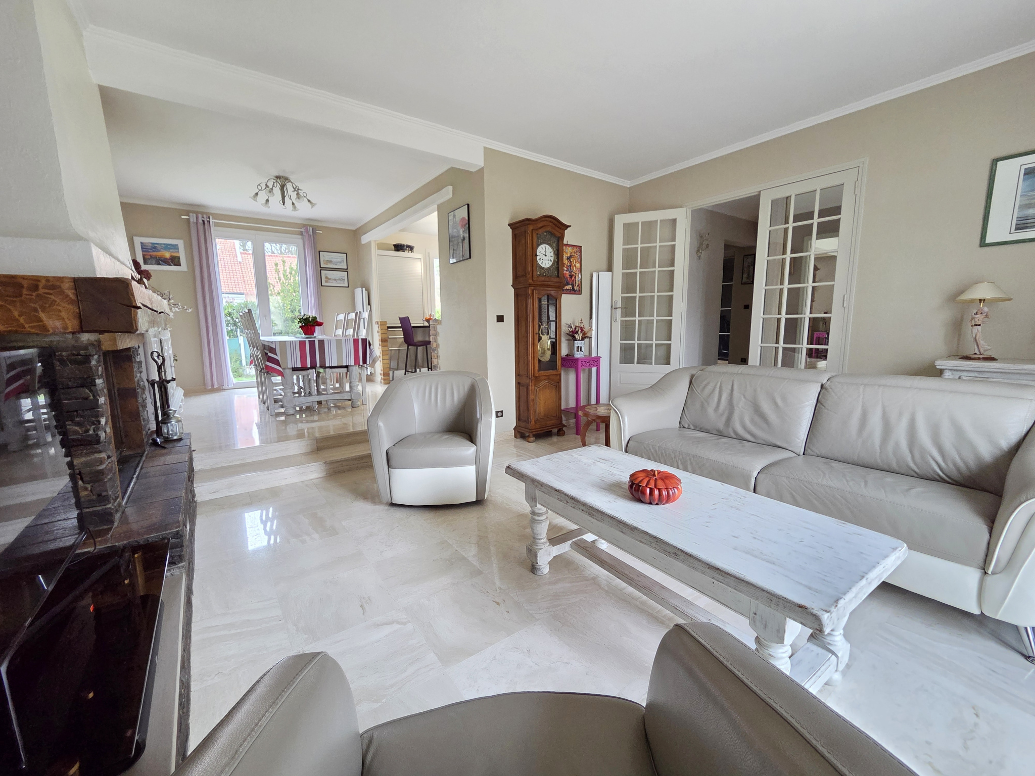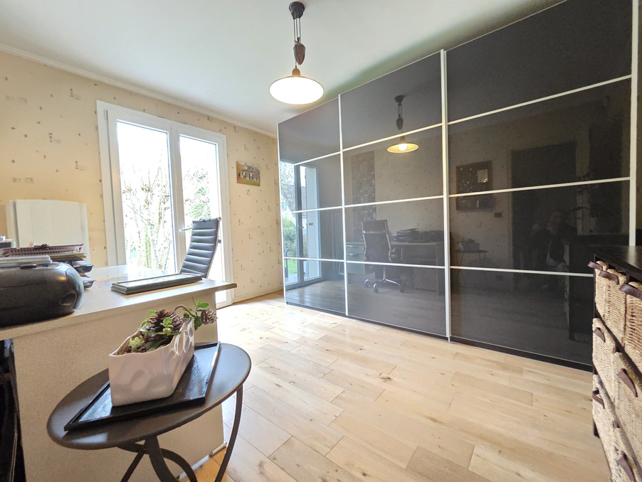 L'Étude Gindra vous présente en exclusivité cette charmante maison idéalement située à proximité immédiate du centre-ville, en lisière du Bois Saint-Martin. Offrant 6 chambres, elle constitue une opportunité rare sur le secteur. La maison se compose, au rez-de-chaussée, d'une entrée avec placard, d'une cuisine ouverte, aménagée et équipée, avec accès direct à la terrasse et attenante à la salle à manger, d'un salon chaleureux avec cheminée, de deux chambres de plain-pied (possibilité de créer une belle suite parentale), ainsi que d'une salle de bains et d'un WC séparé.