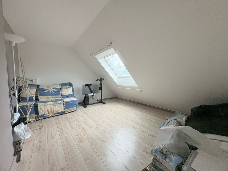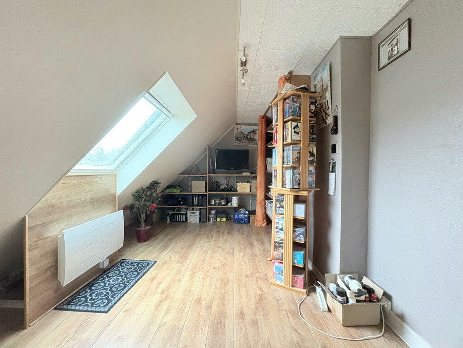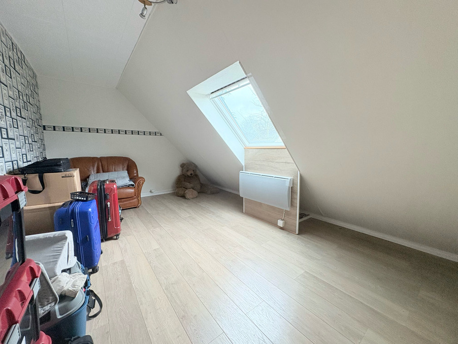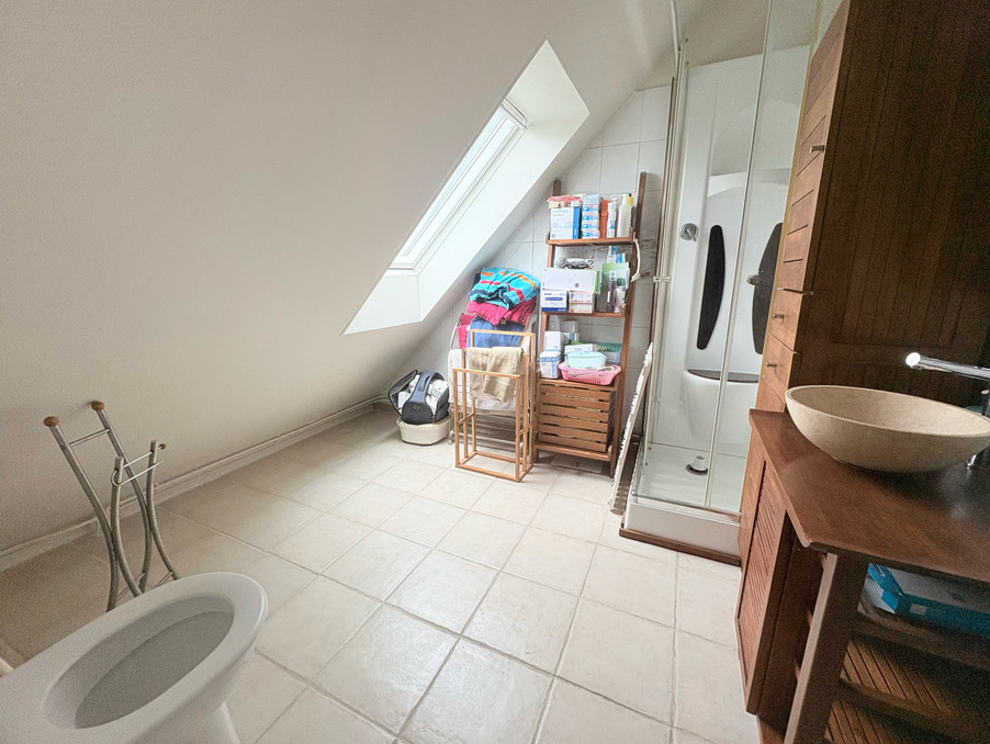 À l'étage, un palier dessert un bureau, trois belles chambres équipées de velux récents électrifiés, ainsi qu'une seconde salle d'eau avec WC.