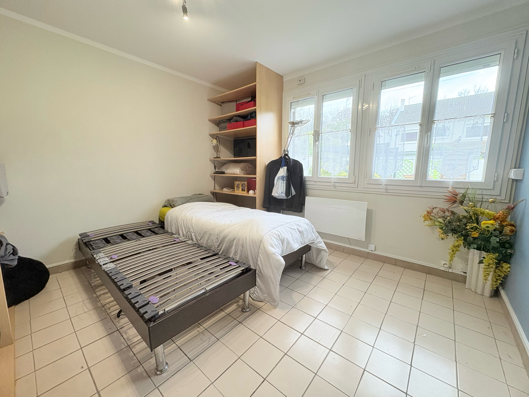 Une entrée, un séjour lumineux ouvrant sur une terrasse et un agréable jardin exposé plein sud, une cuisine moderne aménagée, ainsi qu'une chambre de 12,5 m2. Ce niveau dispose également d'une grande salle d'eau avec WC et d'une buanderie d'environ 11 m2, offrant un espace de rangement et d'organisation très appréciable.