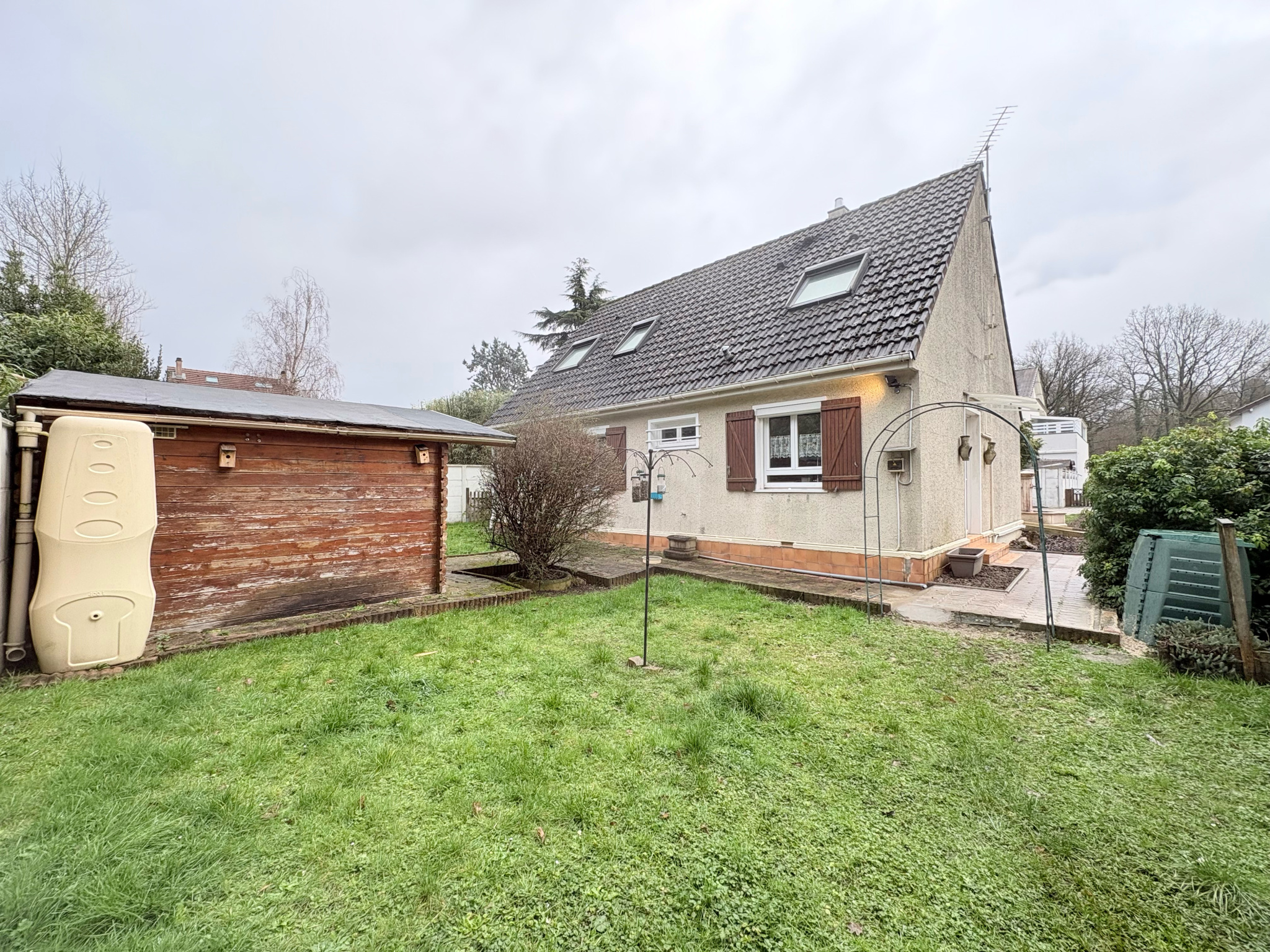 Un grand garage avec borne de recharge pour véhicule électrique ainsi qu'un cabanon de jardin viennent compléter les prestations de ce bien.